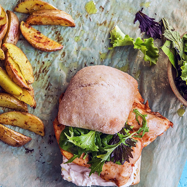 Ingrediente: piept de pui la grătar, roșii, cartofi prăjiti, sos de usturoi, kechup, mozzarella Gramaj: 340g