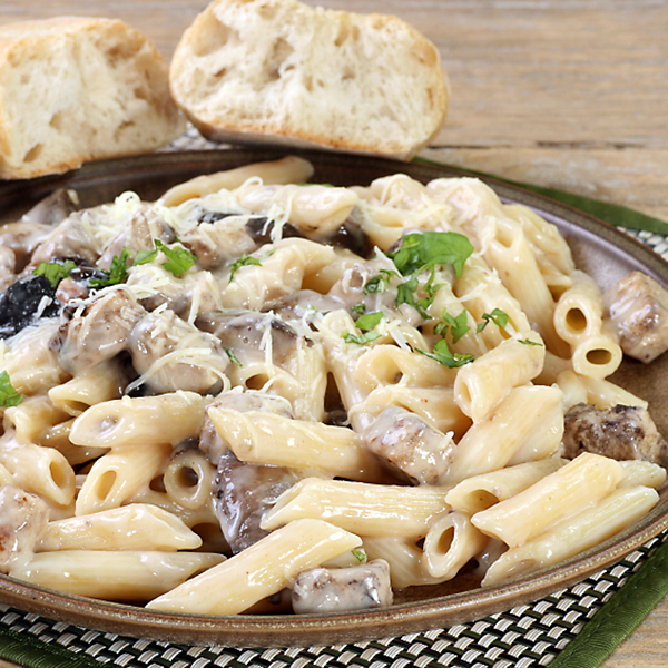 Ingrediente: pene, piept de pui, ciuperci, parmezan, smântână, usturoi, oregano Gramaj: 350g