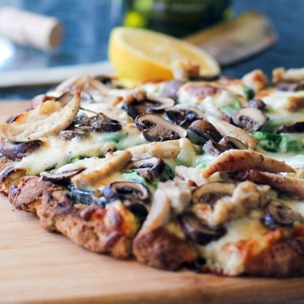 Ingrediente: sos de pizza, mozzarella, piept de pui, ciuperci, măsline, ardei gras Mărimi: 32cm/640g 40cm/870g 60cm/1870g